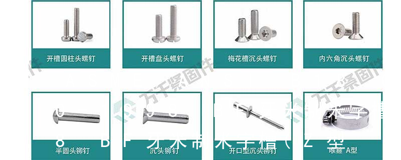 ASME B16.3-1998 可鍛鑄鐵螺紋管件(150和300磅級)ASME B16.33-2002 壓力在125psi以下燃氣系統用手動金屬制燃氣閥門(規格從NPS1/2至NPS2)ASME B16.34a-1998 法蘭、螺紋和焊接端連接的閥門 ASME B16.36-1996 孔板法 (鐵板牙自攻螺絲) B-2: Plastic Tapping Screw. (塑膠用,自攻螺絲) C: Wooden Screw : 木工螺絲 D: Drywall Screw :水泥墻螺絲 E: Self Drilling Screws鉆尾螺絲(不銹鋼鉆尾螺絲,復合材料鉆尾螺絲) F:膨脹螺絲,四片膨脹螺絲又
